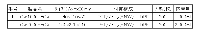 材質構成:バリアNY#15/ /LLDPE(No.1~3 #65・No.4~8 #110・No.9~14 #130)
